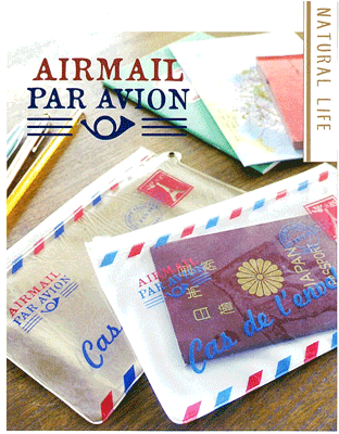 PAR AVION ジップケース エアメールのようなデザインが可愛い、PAR AVIONのジップケースです。