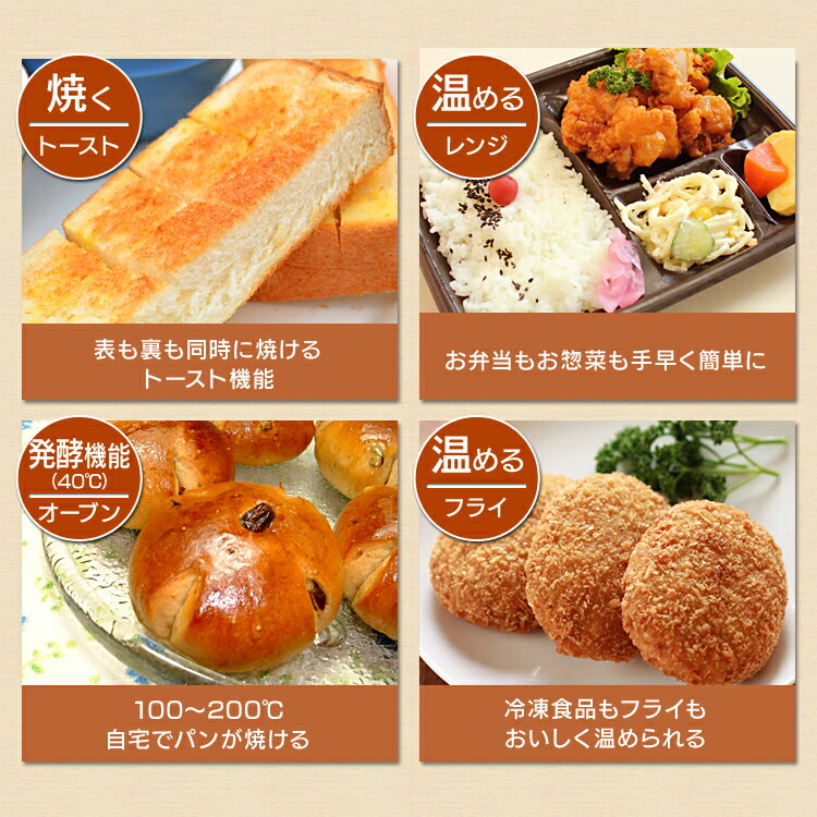 あたため・解凍(レンジ)、トースト(グリル)、お菓子作り(オーブン)がこれ1台でできます。