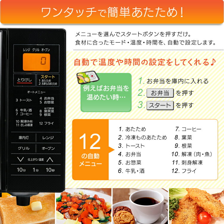 【レンジ機能】12のメニューを選んでスタートボタンを押すだけで温度や時間を自動で設定。