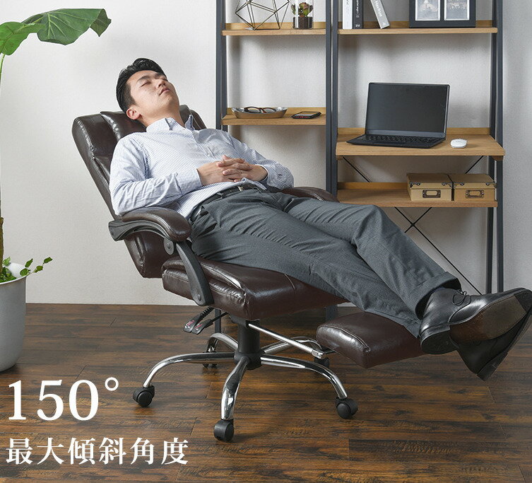 ハイバックプレジデントチェアー社長椅子無段階リクライニング オットマン(フットレスト)付きオフィスチェアー 合皮レザー貼りチェアベッドチェア