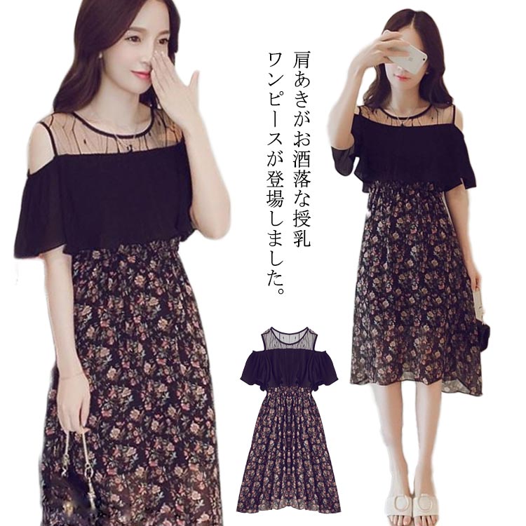 宅配便送料無料 マタニティ期終わっても着られるワンピース マタニティ ワンピース バックドレープワンピース DailyDiary マタニティ M L 花柄 フラワープリント 授乳服とマタニティのミルフェルム マタニティから 授乳期、卒乳後もずっと着られます