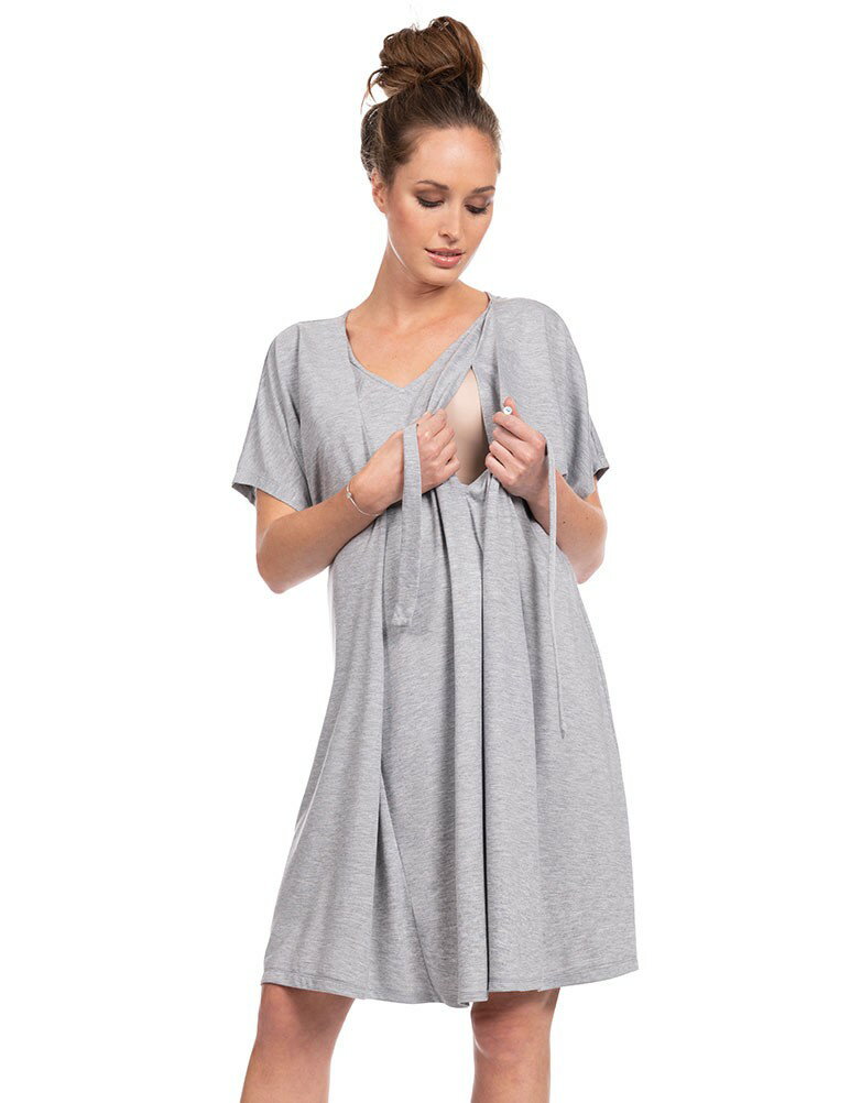 ご出産の入院の際の来客対応の際にもシンプルで可愛いデザインと使いやすい授乳対応の機能性が嬉しいアイテム。